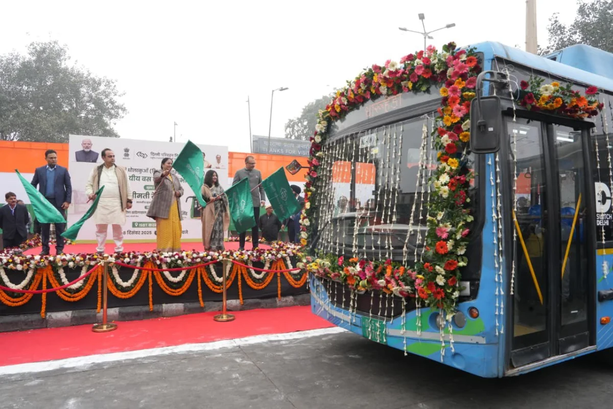 रेखा गुप्ता ने 100 ईवी बसों का उद्घाटन किया