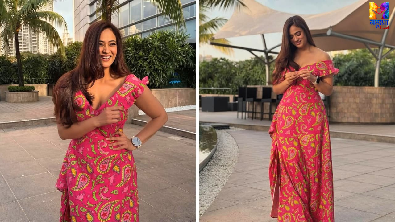 श्वेता ने इस बार मल्टीकलर प्रिंटेड मैक्सी ड्रेस पहनी, जिसमें ग्रीन, पिंक, येलो और ब्लू शेड के खूबसूरत फ्लोरल पैटर्न थे। ड्रेस का ऑफ-शोल्डर फैशन उनके लुक को और ग्लैमरस बना रहा था। कभी वह इसे कंधे पर सेट कर रही थीं, तो कभी इसे थोड़ा नीचे खिसका कर एक स्टाइलिश गहरा वी नेकलाइन इफेक्ट क्रिएट कर रही थीं।