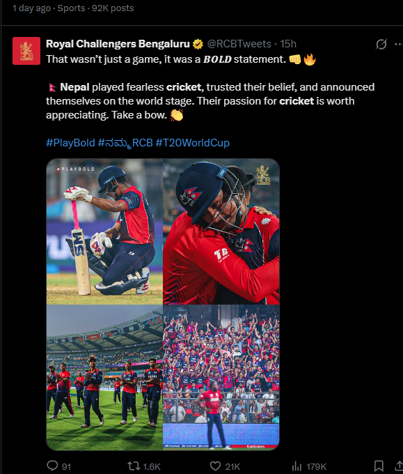 मुंबई के वानखेड़े स्टेडियम में कल रात क्रिकेट इतिहास का एक बड़ा उलटफेर होते-होते रह गया। ICC Men’s T20 World Cup के इस मुकाबले में नेपाल ने मौजूदा वर्ल्ड चैंपियन इंग्लैंड को आख़िरी गेंद तक अपनी उंगलियों पर नचा दिया। हालांकि इंग्लैंड यह मैच 4 रन से जीतने में सफल रहा, लेकिन दिल नेपाल ने जीत लिया। पहले बल्लेबाज़ी करते हुए इंग्लैंड ने 184 रन बनाए, जिसमें जैकब बेथेल और हैरी ब्रुक के शानदार अर्धशतक शामिल रहे। जवाब में 185 रनों के लक्ष्य का पीछा करते हुए नेपाल ने निडर और आक्रामक क्रिकेट खेला। कप्तान रोहित पौडेल (39) और दीपेंद्र सिंह ऐरी (44) ने पारी को संभाला, जबकि अंत में लोकेश बम ने तूफानी बल्लेबाज़ी कर नेपाल को जीत की दहलीज तक पहुँचा ही दिया था। आख़िरी ओवर में जीत के लिए 10 रन चाहिए थे, लेकिन सैम करन की सधी हुई गेंदबाज़ी ने इंग्लैंड को हार से बचा लिया। इंग्लैंड जीत गया, लेकिन नेपाल के जज़्बे ने साबित कर दिया कि वह किसी भी बड़ी टीम को चुनौती देने का दम रखता है।