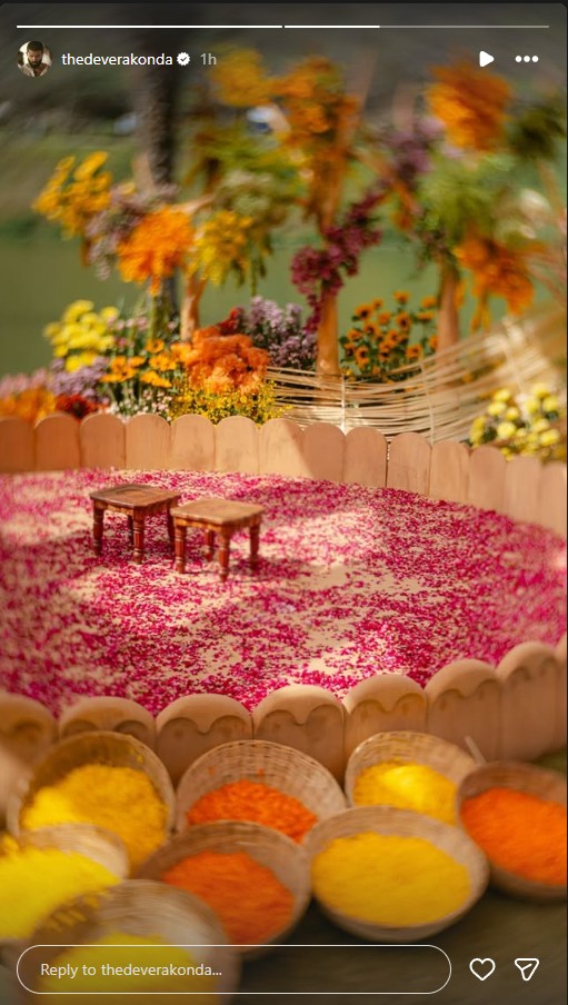 दोनों के चाहने वाले दूल्हा-दुल्हन के रूप में कपल को देखने के लिए बेहद उत्साहित हैं। इसी वजह से कपल लगातार शादी से पहले की रस्मों की झलकियां फैंस के साथ शेयर कर रहे हैं। बुधवार को विजय ने अपनी इंस्टा स्टोरी पर हल्दी सेरेमनी की तस्वीरें साझा कीं।